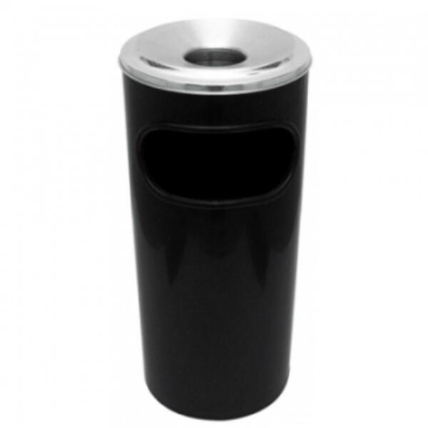 Cinzeiro lixeira plástico com aro em alumínio.