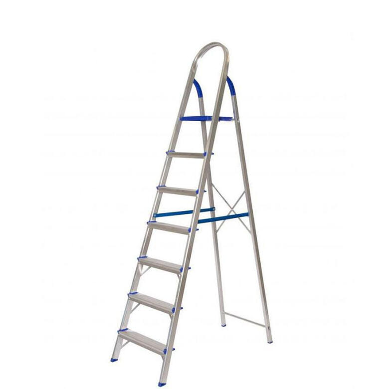 Material da escada: Alumínio Cor da escada: Alumínio natural fosco e acessórios azuis Altura Aprox.: 3,24m Capacidade de carga: 120 kg COD: 046122